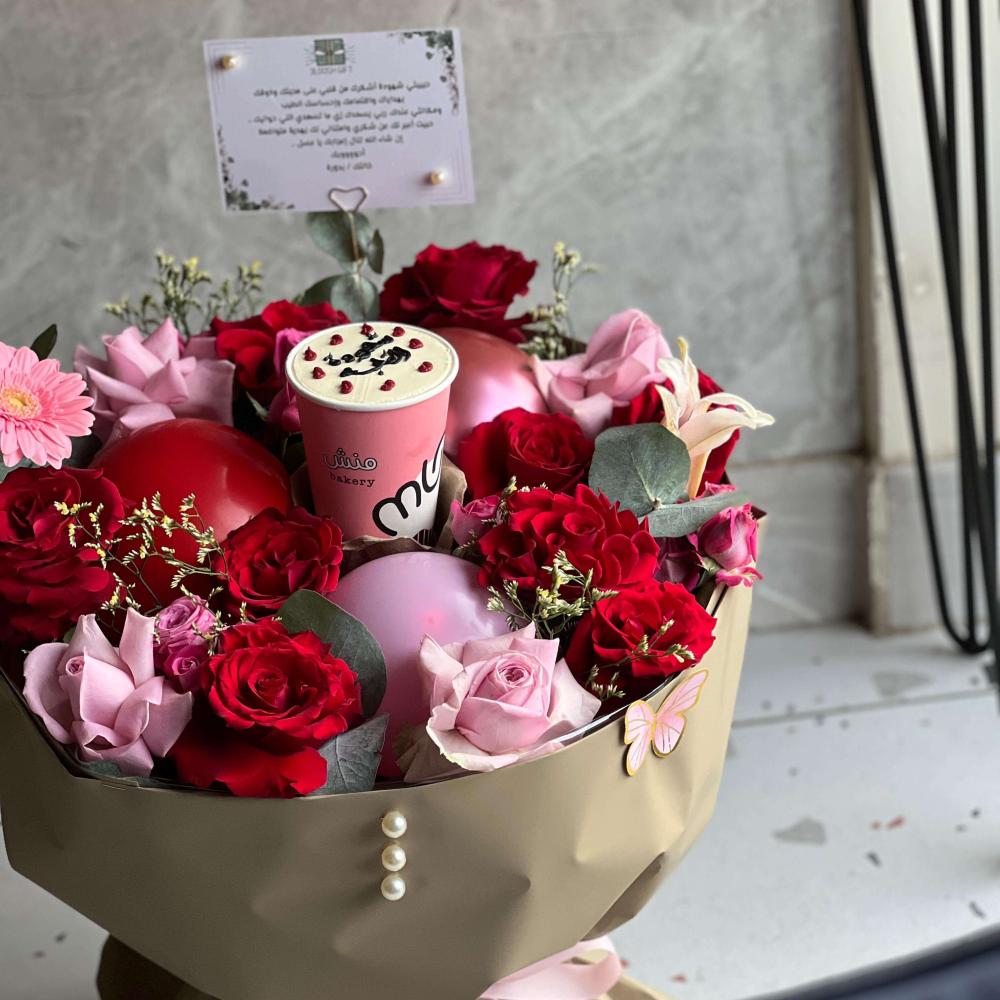 الباقه جداً متميزه بالإضافه الى كُب كيك وبإمكانك اختيار لون الورد وشكل الكب كيك ✨