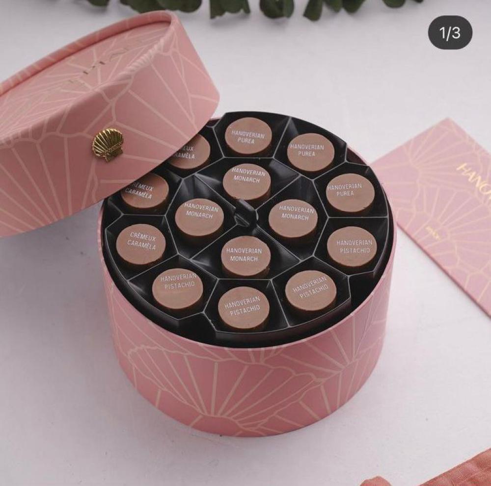 بوكس يحتوي 42 قطعة بأربع حشوات ( فستق . كاراميل . بندق . توت)
